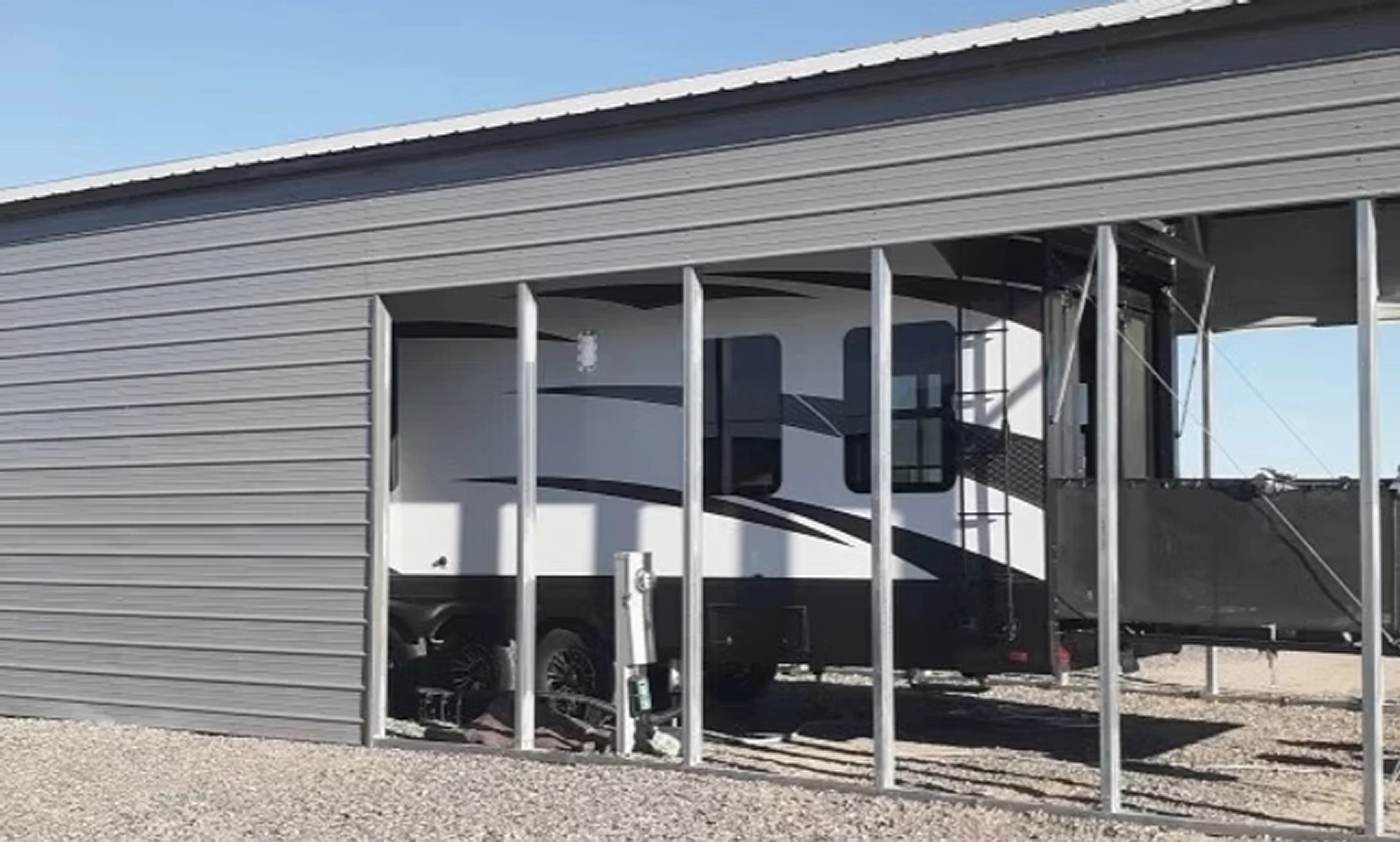 There are many different styles available for you to customize your steel RV carport. The most popular style is a roof-only carport (with no siding). This option is certainly good enough to provide the shade needed to cover your RV from the elements.